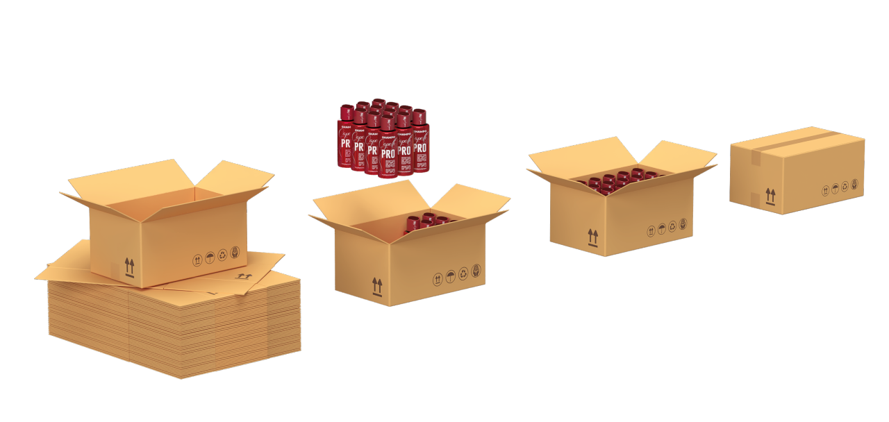 La serie MP integra in una sola macchina il magazzino cartoni, il Pick&place e la Chiuditrice (Nastro o Colla), risultando estremamente compatta.